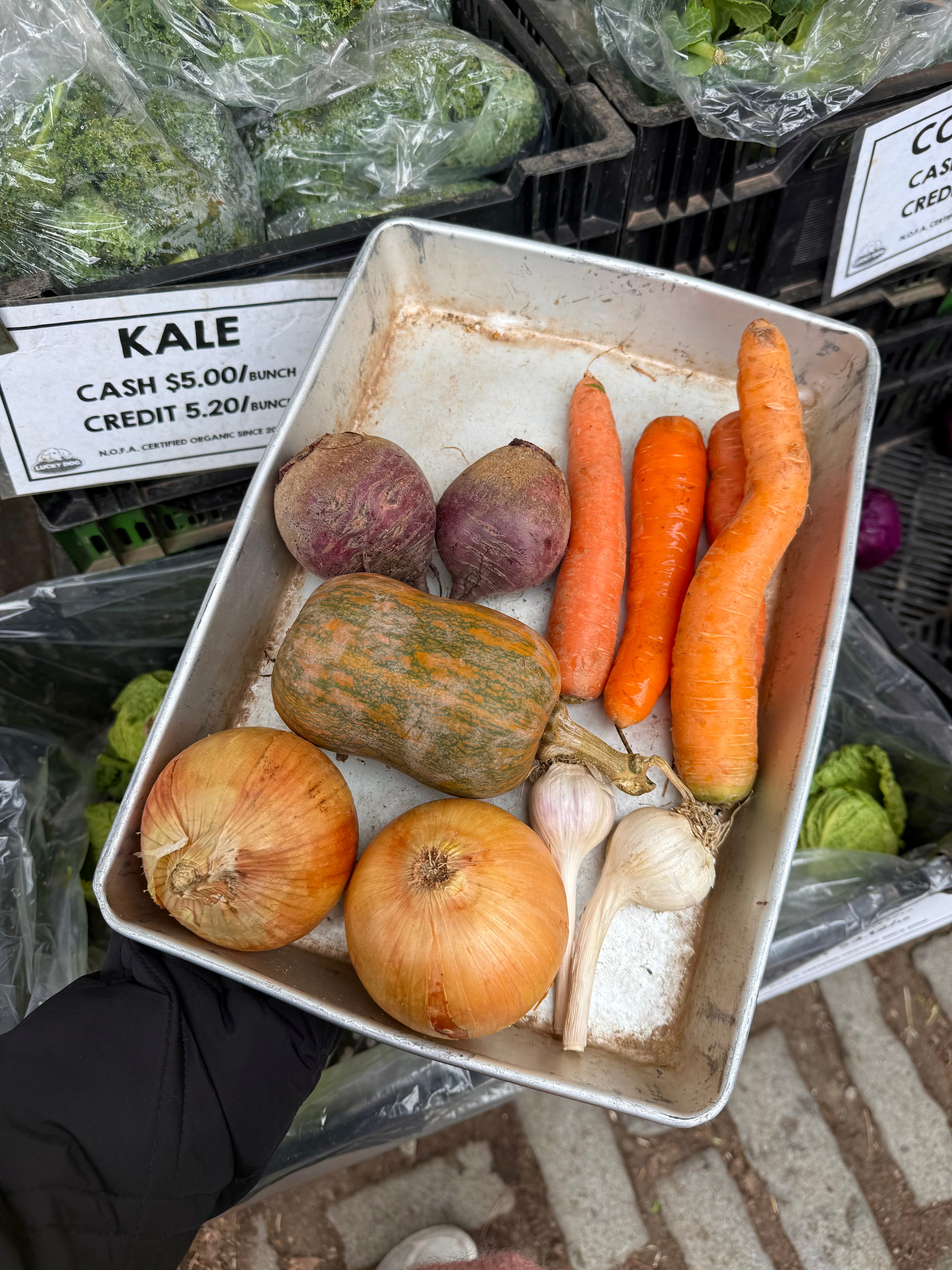 In winter, there isn’t a lot of produce in peak season. There is produce that thrives in cold weather more than others, like kale, cabbage, carrots, leeks, winter radishes, turnips & parsnips. We also have overflow from our beginning of winter produce, like potatoes, winter squash, apples and pears. And then winter is also the season where citrus, oranges, mandarines, tangerines, grapefruit, lemons and limes, thrive. I find it quite amazing that the season where we struggle most with immunity, nature gives us citrus rich in vitamin C, and hearty root vegetables to warm our bodies.