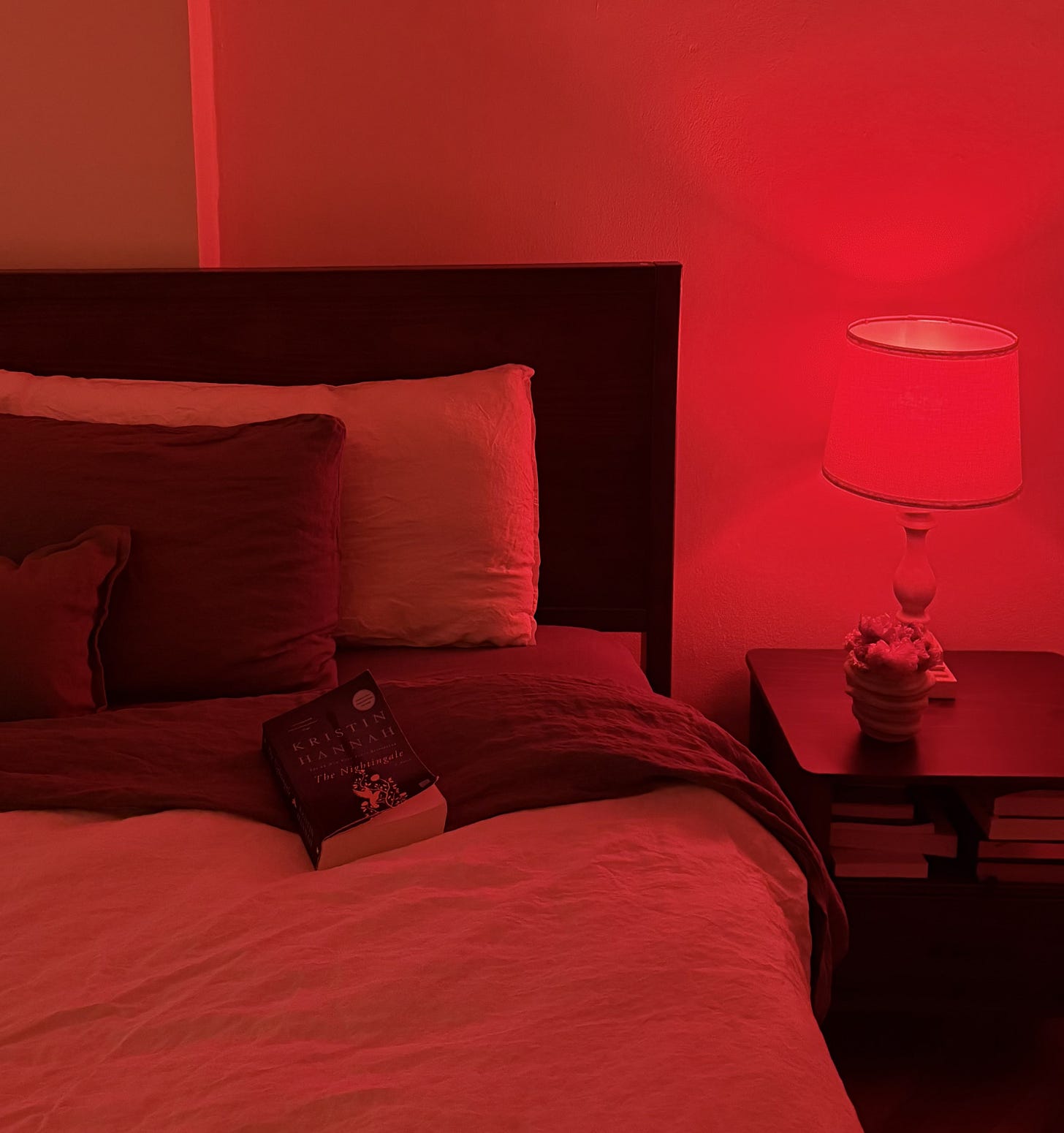 Red light on the other hand helps to block out blue light, and optimize melatonin production to help us sleep better. At night I try to turn on only my red lights and light candles before bed (or my soft yellow lights). If I need to be on screens, blue light blocking glasses are super helpful. I also love my red light reading clip. I even have red light motion sensor lights in my bathroom for when I get up to go so it doesn’t interrupt my sleep.