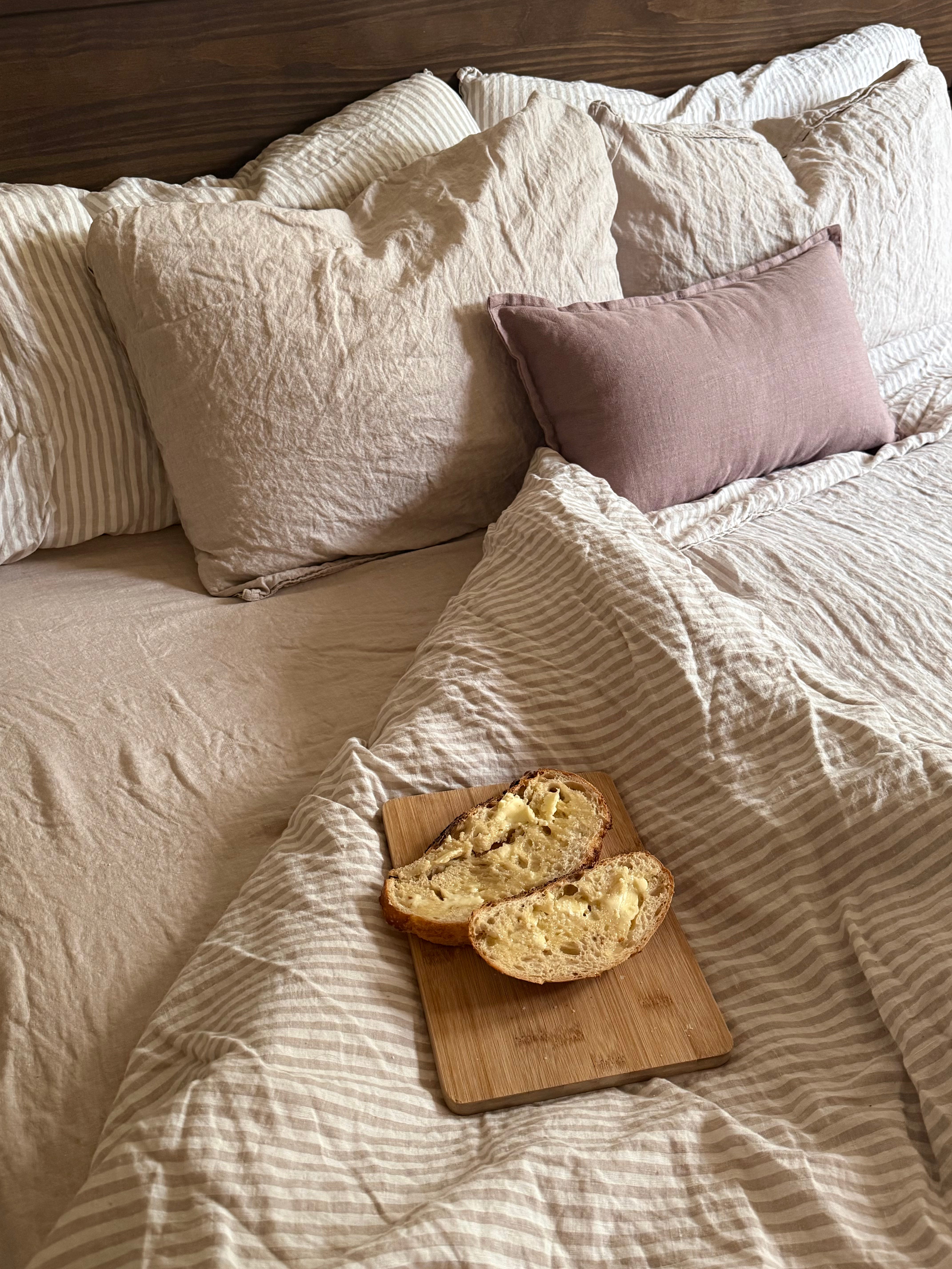 & lastly, my sheets make the biggest difference in my sleep. Whenever I sleep somewhere else it’s just not the sameeee. I am obsessed with 100% linen sheets I will rave about it all day long because when I switched my sleep changed for the better. Linen is amazing it’s a high vibrational fabric, which can promote healing, relaxation and positive energy flow. It is also naturally antibacterial, hypoallergenic, breathable, and temperature regulating. I also always wash my sheets, and all my laundry, with clean detergent* (I can’t stand fragrance and sleep is where our bodies heal so I don’t want my sheets to be soaked in toxins) and then I love using wool dryer balls to make them extra soft. *Branch Basics discount code is “glowwithella”